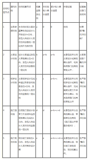 2、設(shè)計(jì)各階段收入確認(rèn)的支撐性材料: 各階段收入確認(rèn)的外部證據(jù)包括:客戶簽署的甲方確認(rèn)函、第三方簽批的審核文件(包括但不限于政府規(guī)劃、建設(shè)等主管部門以及審圖機(jī)構(gòu)出具的審核、核準(zhǔn)、備案、竣工驗(yàn)收?qǐng)?bào)告等文件)。