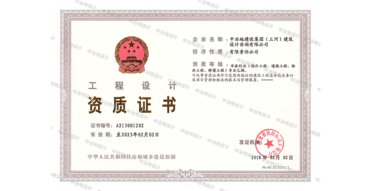 首頁(yè) > 信息公開 > 榮譽(yù)資質(zhì) 工程設(shè)計(jì)資質(zhì)證書